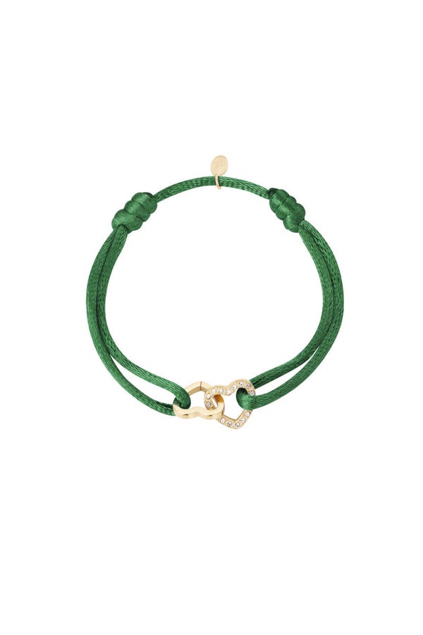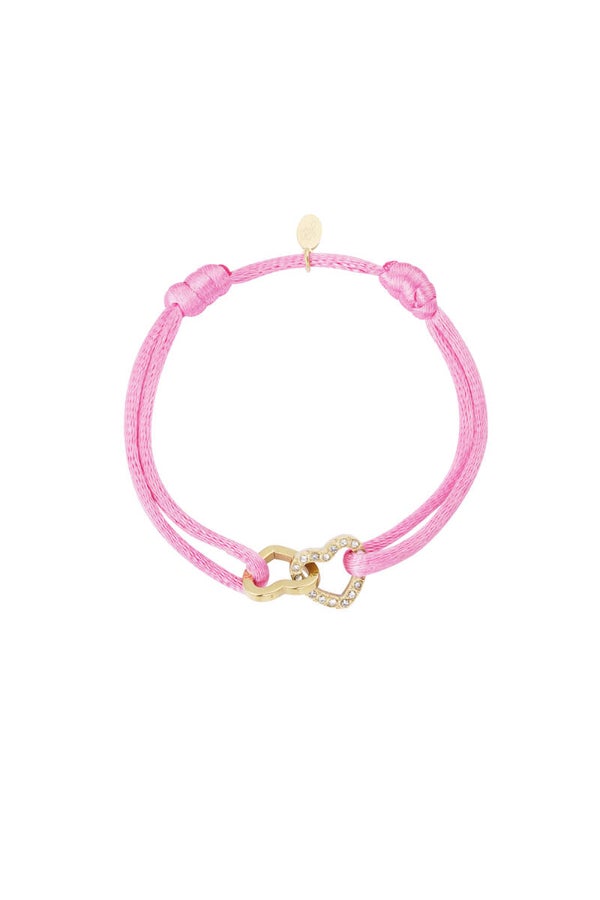 Hoe leuk is deze satijnen armband met dubbel hartje met zirkoon steentjes?