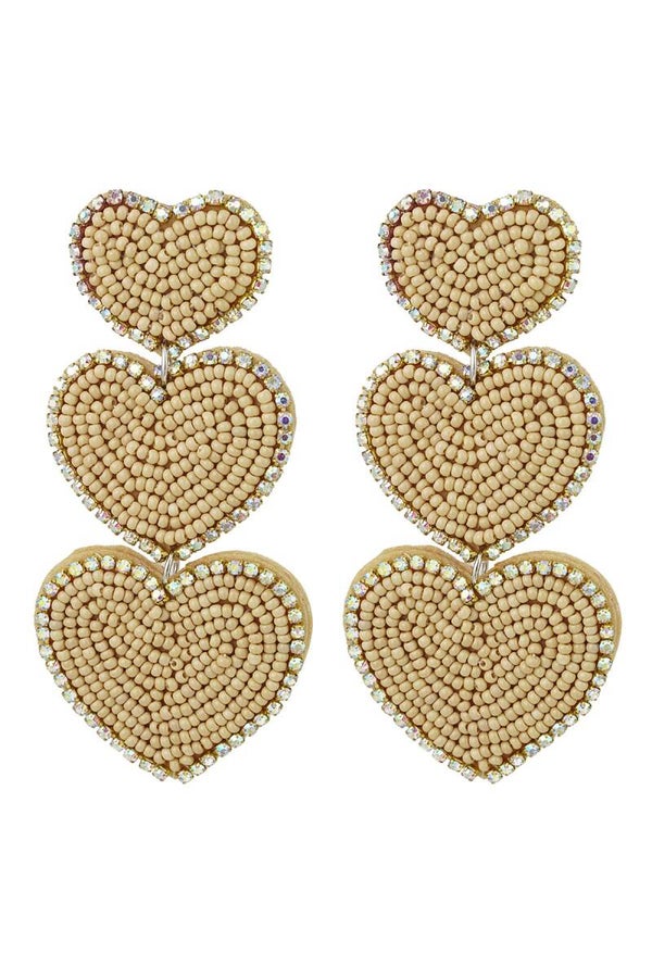 Hoe leuk zijn deze oorbellen met drie prachtige hartjes, gemaakt van kralen. De oorbellen zijn aan de zijkant voorzien van prachtige multi kleurige details. Dankzij dit paar oorbellen maak jij jouw gehele look compleet en voorzie jij jouw outfit van een echte Eye-cather! De kralenoorbellen zijn gemaakt van glaskralen, stof en stainless steel en hebben een afmeting van 8,5 cm. Helemaal leuk om deze oorbellen te combineren met meerdere sieraden voor een complete look. Verkrijgbaar in de kleuren: roze & beige.