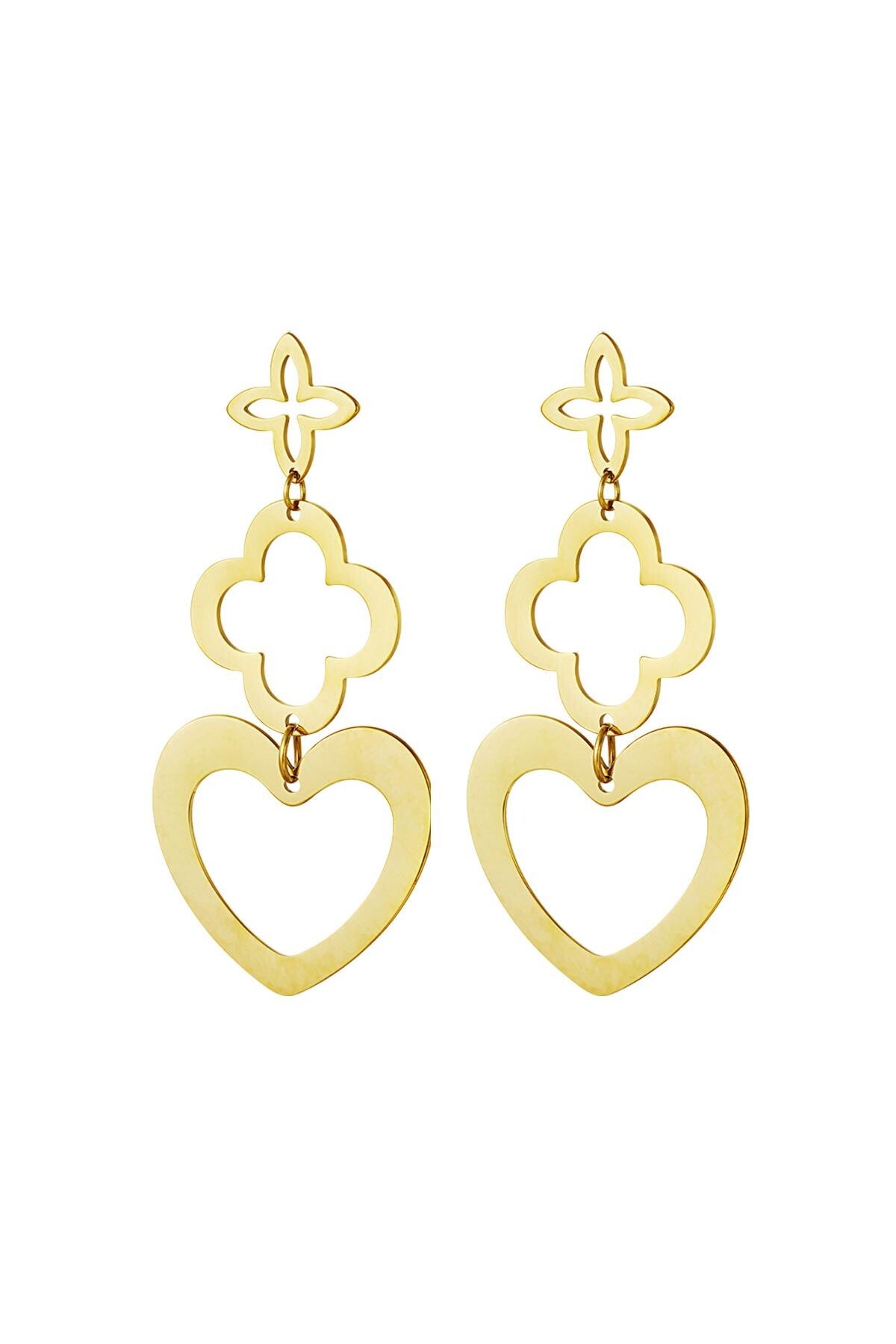 Hoe leuk zijn deze statement oorbellen met drie prachtige bedels in de vorm van een hart en klaver. Dankzij deze prachtige oorbellen kun jij een perfecte look creëren. Je kunt deze oorbellen bijvoorbeeld perfect dragen naar een festival of een tof feestje. Leuk om deze oorbellen te combineren met meerdere sieraden met bedels. Statement oorbellen bedeltjes zijn gemaakt van stainless steel en hebben een afmeting van 6,5 cm. Verkrijgbaar in het goud en zilver.