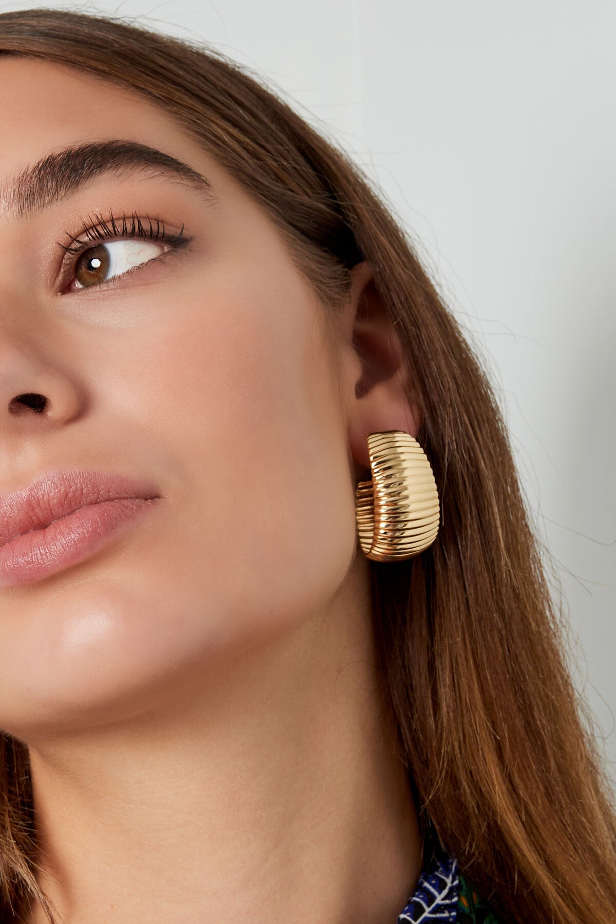 Wauw! Shop nu deze zilveren statement oorbellen in de vorm van een hangende maan met opvallende grove streepjes print! Mega trendy en superleuk te combineren met meerdere sieraden met ronde details!
