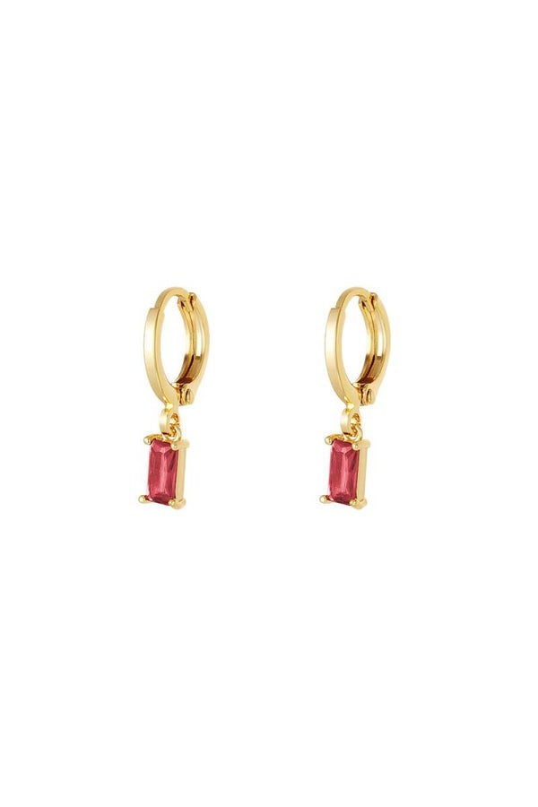 Schattige oorbellen met een hangertje met een vierkant gekleurd steentje. De oorbellen zijn gemaakt van gold plated koper. Deze sparkle oorbellen zijn ingelegd met kleine zirkonia steentjes. De oorbellen zijn 2.1 cm lang en 1.2 cm breed.