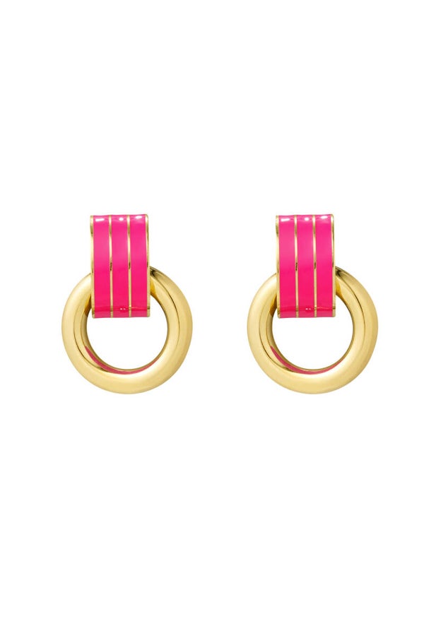 Deze leuke oorbel met kleur detail is dé perfecte oorbel. Hij is subtiel, maar door de kleur valt hij toch lekker op. De oorbel is stainless steel en heeft 2.7 bij 2.1 centimeter. De oorbel is verkrijgbaar in verschillende kleuren.