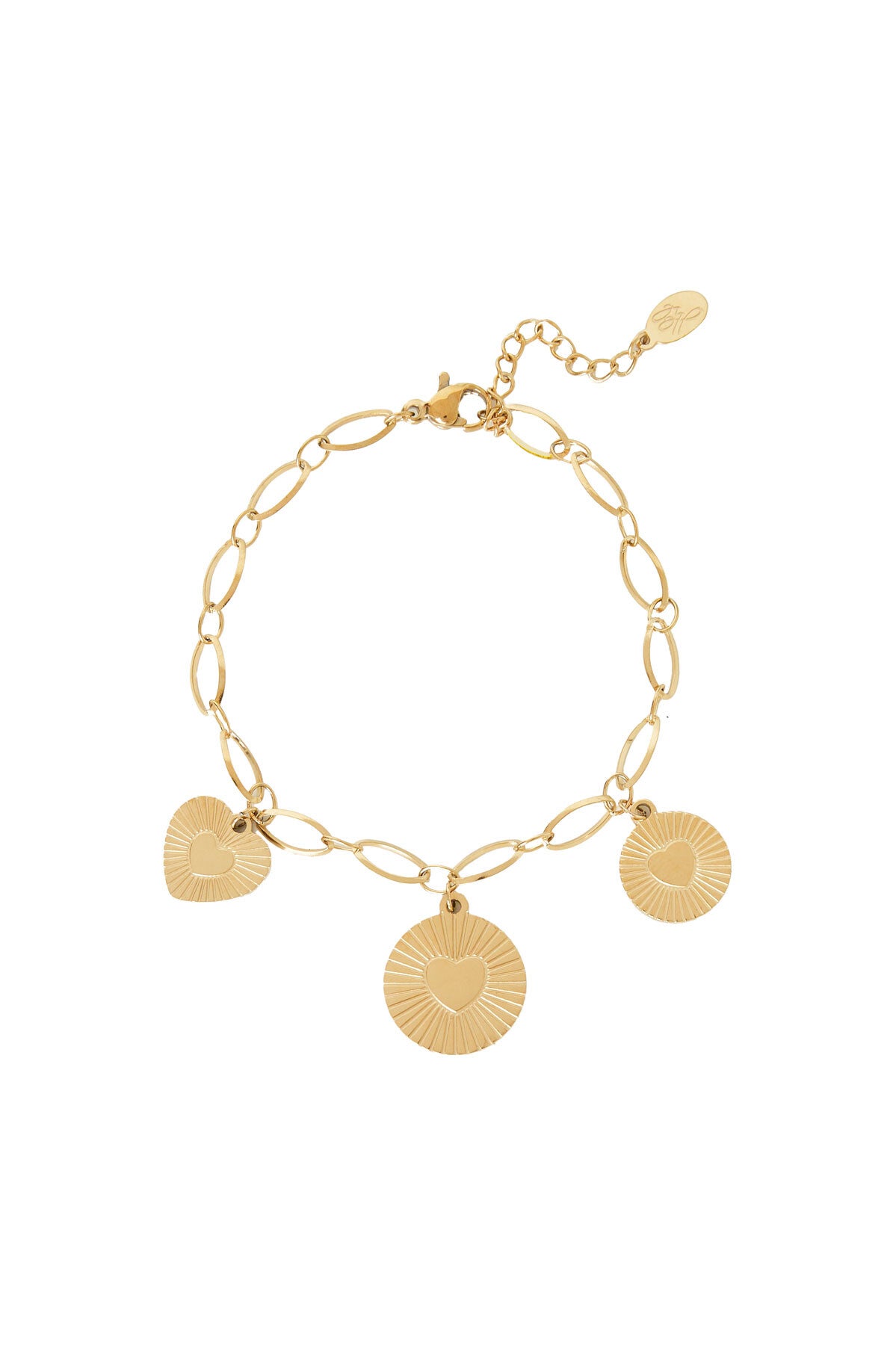 Wauw! Hoe tof is deze prachtige armband met drie coins met hartje? Erg trendy en mega leuk te combineren met meerdere sieraden en accessoires. Deze prachtige armband is gemaakt van stainless steel en heeft een verstelbare sluiting vanaf 16 cm, t/m 19 cm, ideaal! Verkrijgbaar in de kleuren: goud en zilver.